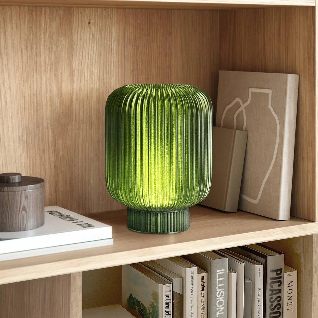 Harmony Table Lamp – Green Ribbed Design, Dimmable LED, Eco-Friendly