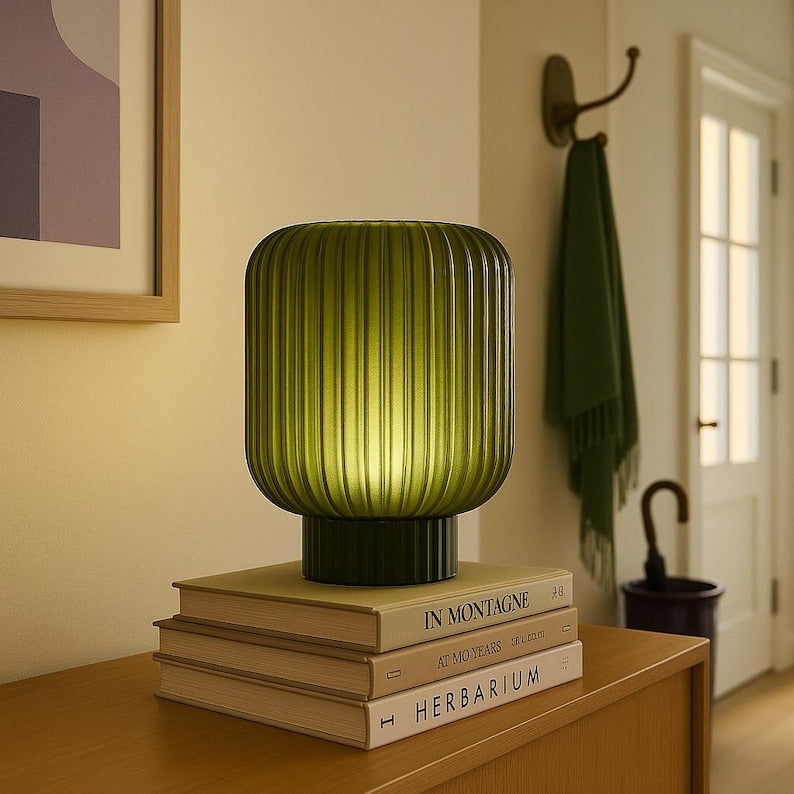 Harmony Table Lamp – Green Ribbed Design, Dimmable LED, Eco-Friendly