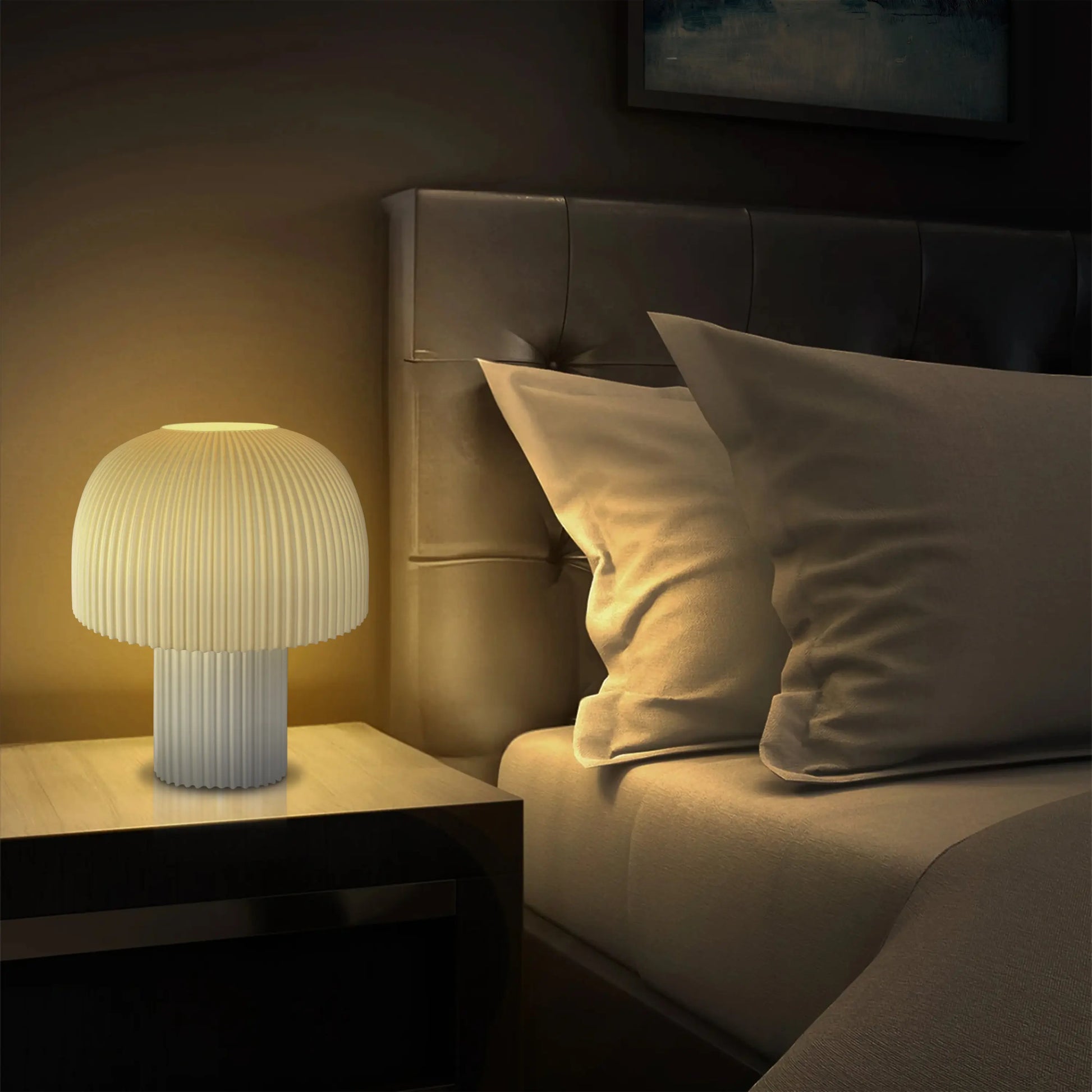 Modern Ribbed Mushroom Table Lamp – Dimmable LED, Handcrafted in LA