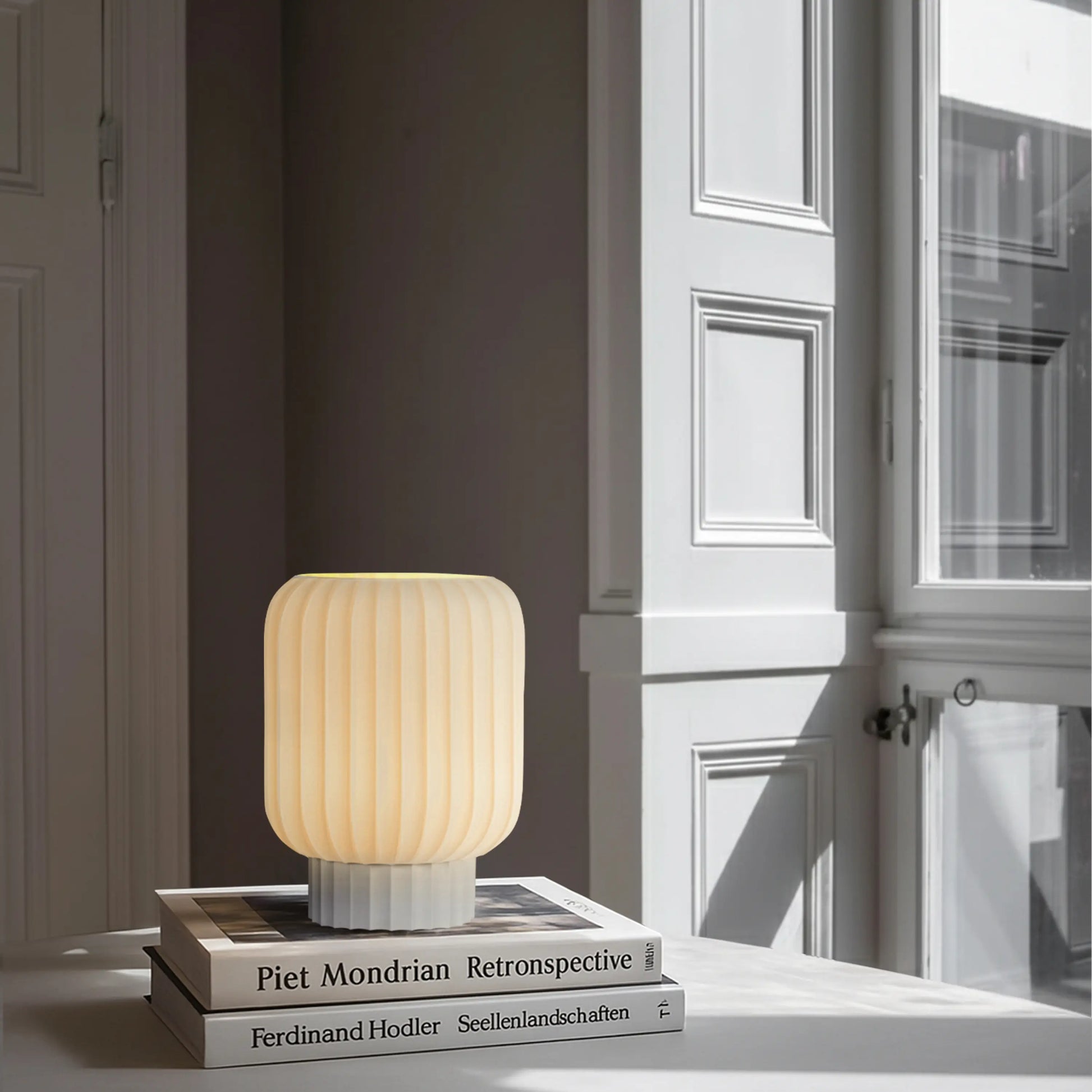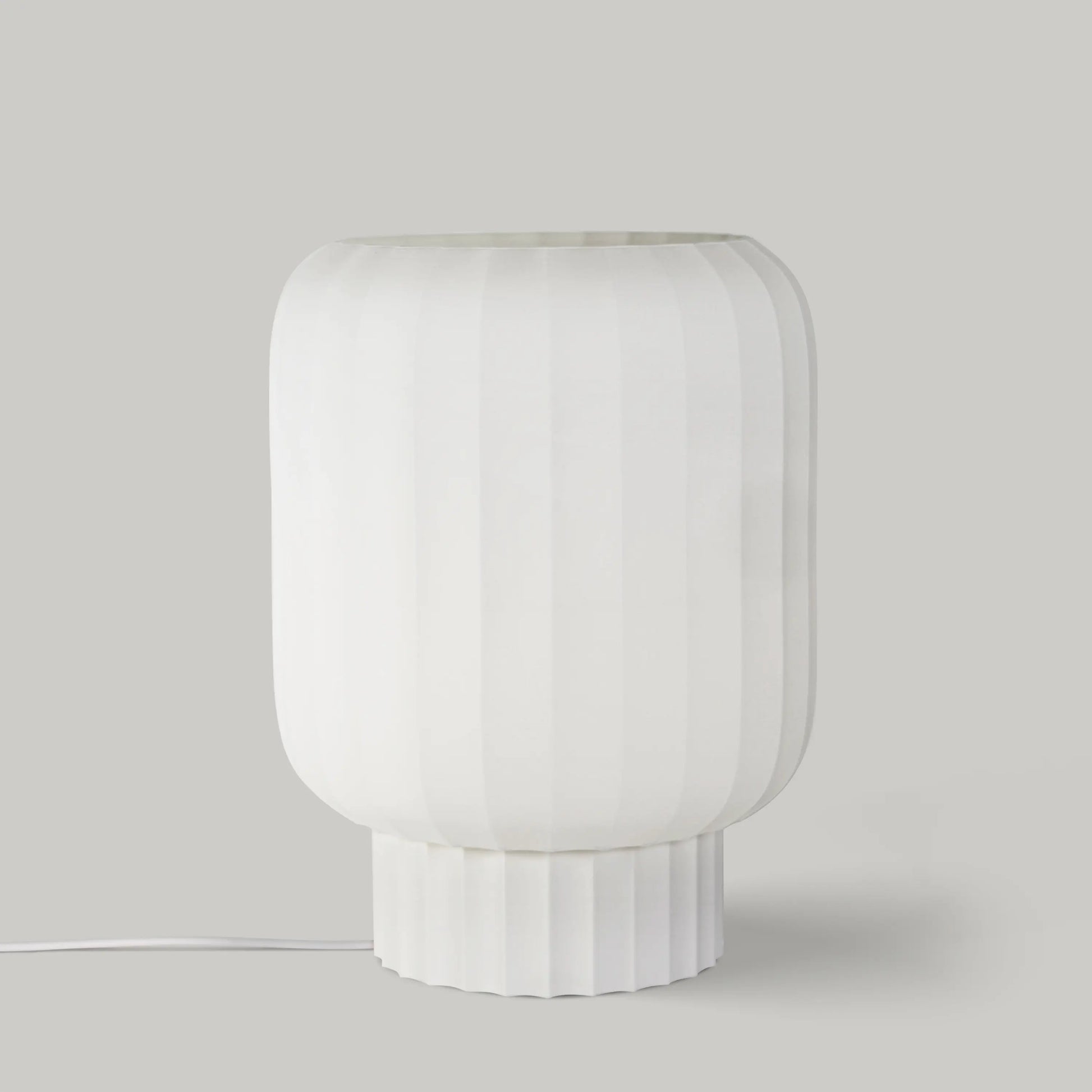 Modern Wide Ribbed White Table Lamp – Dimmable LED, Made in Los Angeles