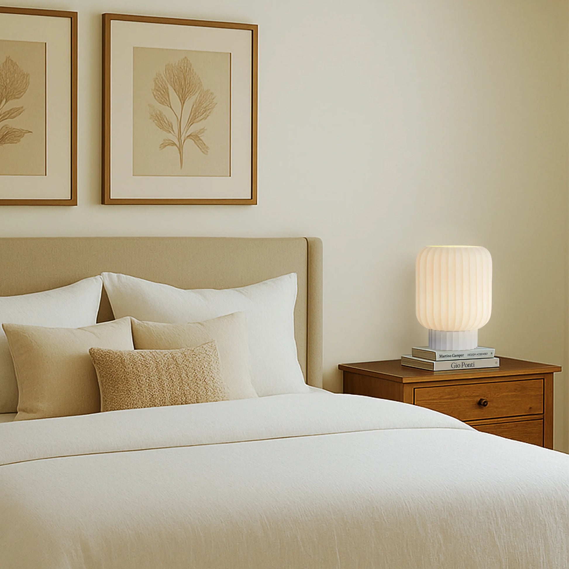 Bring elegance and warmth to any space with the Modern Wide Ribbed White Table Lamp. Combining minimalistic design with sculptural sophistication, this lamp is perfect for bedrooms, living rooms, home offices, or cozy reading nooks. Its smooth matte finish and wide ribbed design diffuse light beautifully, creating a soft, inviting glow that enhances any environment.